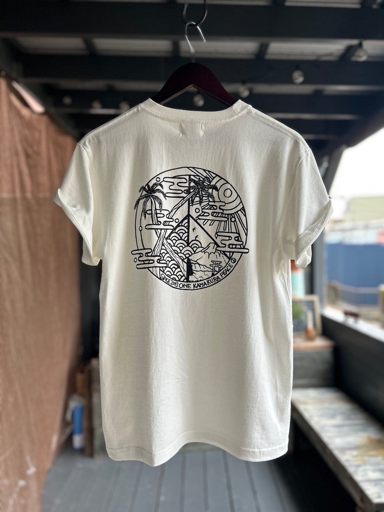 PEACEマークのアウトラインの中に鎌倉らしい自然を詰め込みました。
